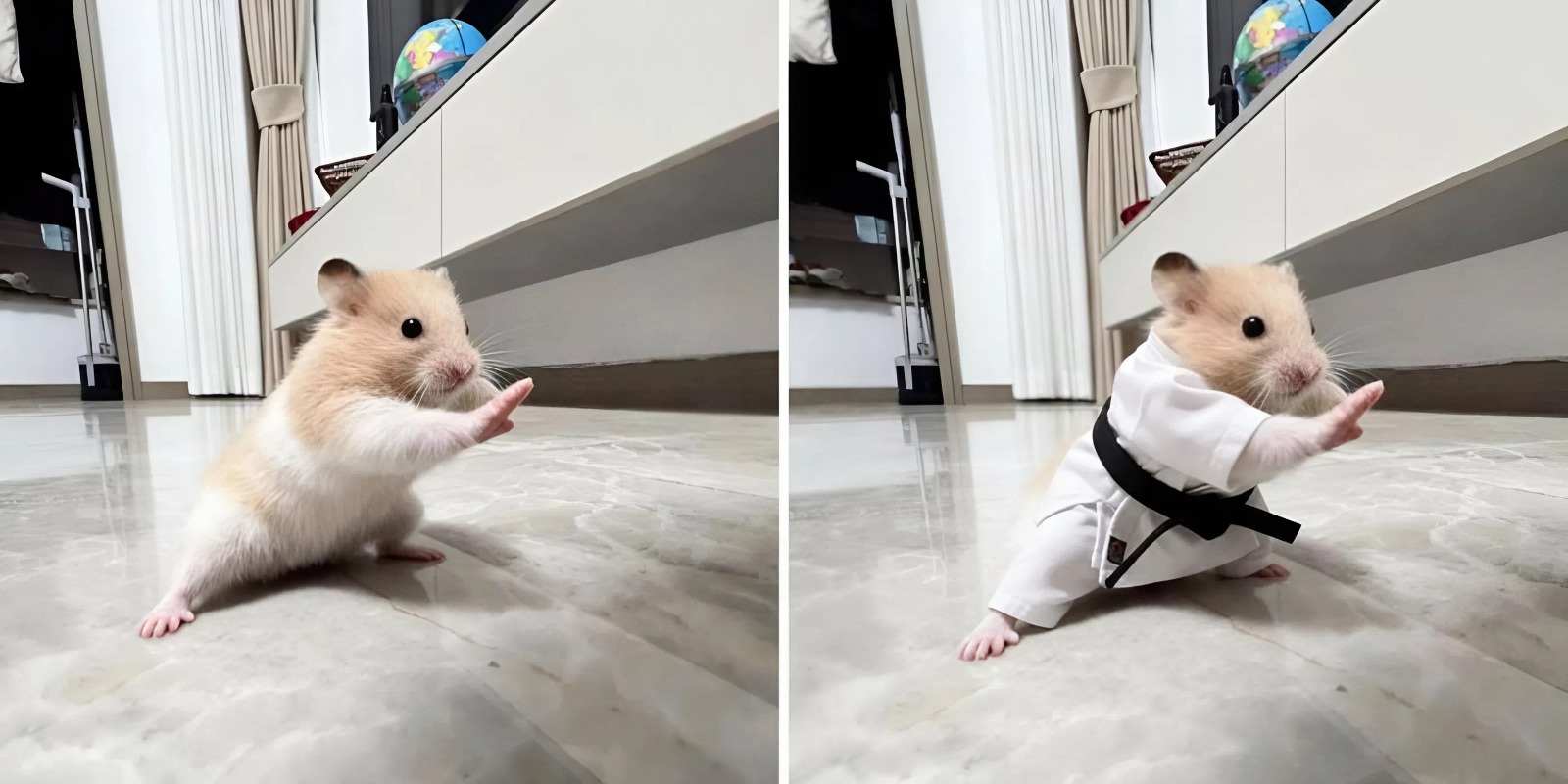Вылитый Сплинтер из «Черепашек-ниндзя». В соцсети X набирает популярность пост с фотографией хомяка в необычной позе — тот будто готовится к бою. Пользователи быстро превратили снимок в мем — кто-то с помощью нейросетей нацепил на зверька солнцезащитные очки, а кто-то наделил его волшебными силами и отправил сражаться с другими хомяками. Всё началось с этого поста — по словам автора, фото сделали его родители. Я просто написал родителям, как там поживает мой хомяк, и они прислали мне это фото. Реакция на такой милый снимок последовала незамедлительно. Хоми-чан с чёрным поясом. Этот хомяк буквально принял «позу капитуляции» 😂 Некоторые провели аналогию с известными фильмами, мультфильмами и мемами. Точное совпадение. Бро готов вырваться на свободу. Сударь, не могли бы вы поделиться хотя бы каплей контекста? Мы все знаем, что это вы, мастер Сплинтер. А у вас этот хомяк вызывает какие-нибудь ассоциации? Напишите в комментариях. Из Мексики в Канаду пешком: девушка променяла престижную работу на маршрут длиной 5 700 км — и не жалеетВ США назвали главные цели и сценарии первой пилотируемой миссии на Марс — поиск жизни в приоритете