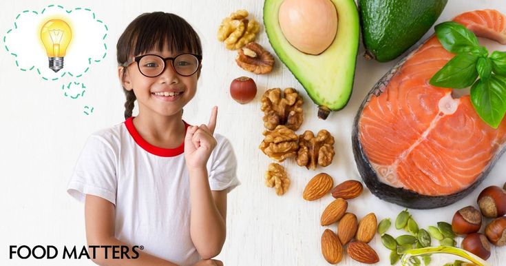 Омега-3 жирные кислоты (например, DHA и EPA) — это строительный материал для клеток мозга, а также фактор, который помогает улучшить память и внимание у детей. Их достаточно много в морской рыбе, льняных семечках, грецких орехах.