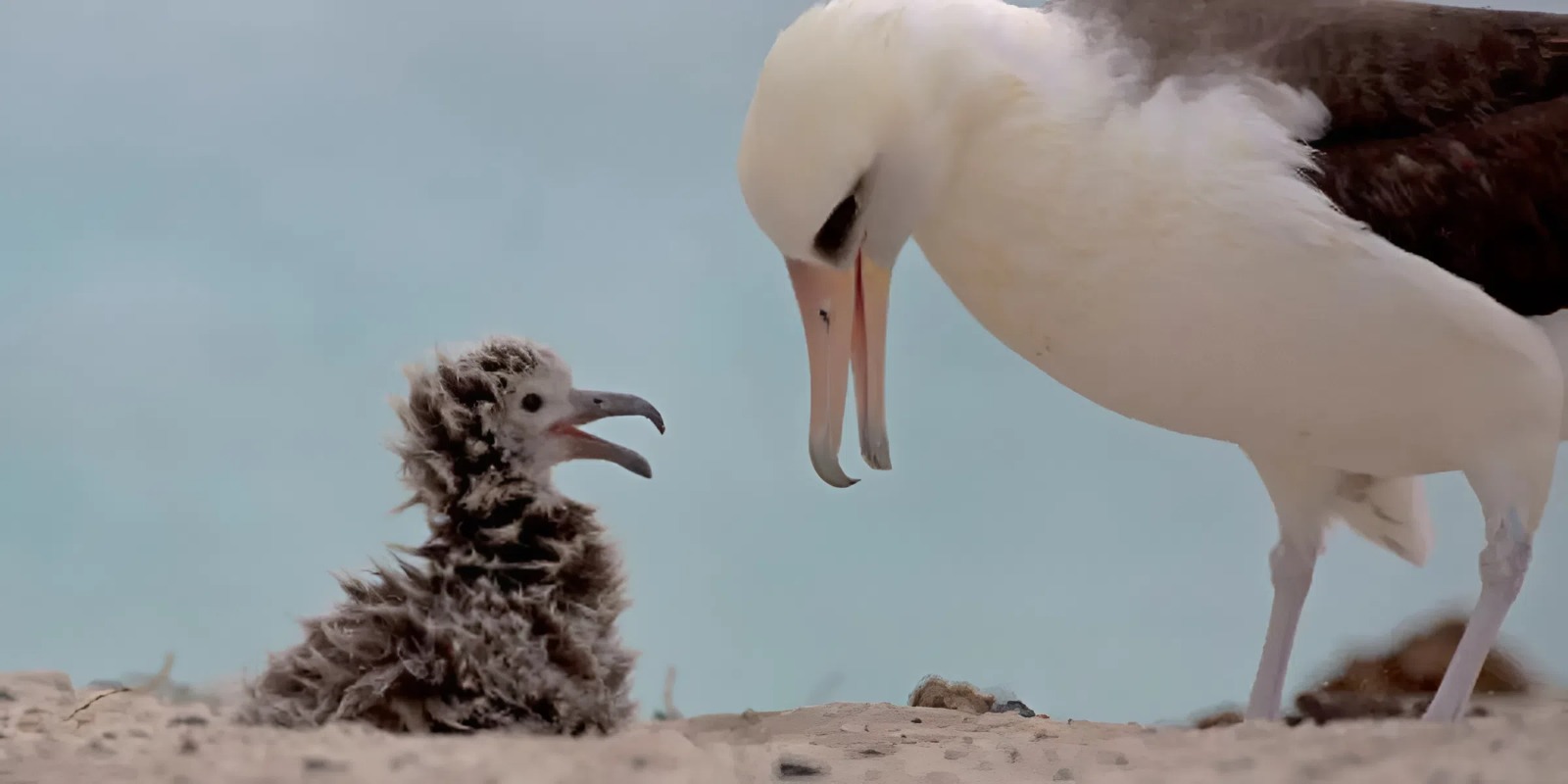 Пушистый комочек, который умиляет не меньше любого котика. У старейшей из известных диких птиц в мире, тёмноспинного альбатроса по кличке Мудрость, появилась новая внучка. Об этом сообщила Служба охраны рыбных ресурсов и диких животных США (USFWS). Организация опубликовала в своих соцсетях ролик, на котором видно пушистого птенца, зевающего рядом с крупной взрослой особью, предположительно, мамой. Скриншот из видео USFWS Птенец вылупился в начале марта. Его отец — один из сыновей Мудрости, который появился на свет в 2011 году. Ожидается, что к лету малыш окрепнет и покинет гнездо. Молодые альбатросы проводят в океане от трёх до пяти лет, прежде чем вернуться в колонию и начать искать пару. Скриншот из видео USFWS Мудрость — настоящая легенда орнитологии. За её жизнью наблюдают с 1950‑х годов, и сейчас ей около 74–75 лет. В 2024 году она вновь успешно отложила яйцо, став самой возрастной дикой птицей, способной к размножению, а в целом за свою жизнь она вырастила более 30 птенцов. Мудрость. Фото: Jon Plissner / USFWS Тёмноспинные альбатросы (Phoebastria immutabilis) обитают в северной части Тихого океана. Это крупные морские птицы, питающиеся преимущественно кальмарами. Обычно они образуют пары на всю жизнь. Одна из крупнейших колоний этих альбатросов находится в Национальном заповеднике дикой природы Мидуэй-Атолл на окраинах Гавайских островов. Мудрость продолжает прилетать туда в сезон гнездования, в последний раз её видели там в ноябре 2025 года. Сан-Сан: «кот с самыми красивыми глазами» стал новой звездой соцсетей13 красивых снимков дикой природы с конкурса British Wildlife Photography Awards 2026